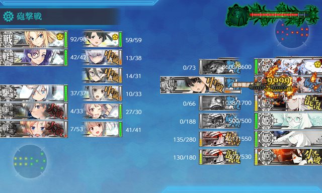 開幕陸航+支援砲擊幾乎全滅敵方二隊,大和特攻再次掃場