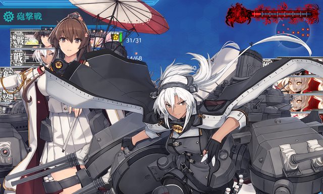 第一擊就直瞄BOSS,但被敵方援護擋掉了(BOSS前方出現弧形的援護特效)