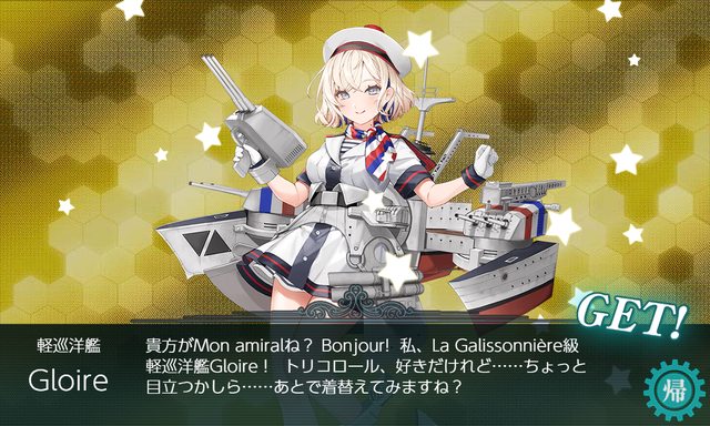 E-3 過關獎勵,第一艘活動新船Gloire到家