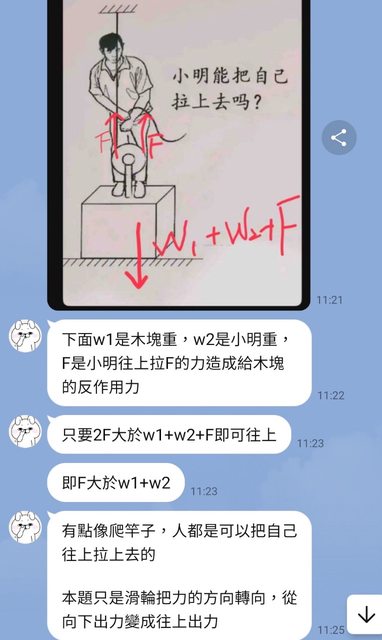 標題Re: [閒聊] 小明站在木箱上拉牽繩能把自己拉起來?