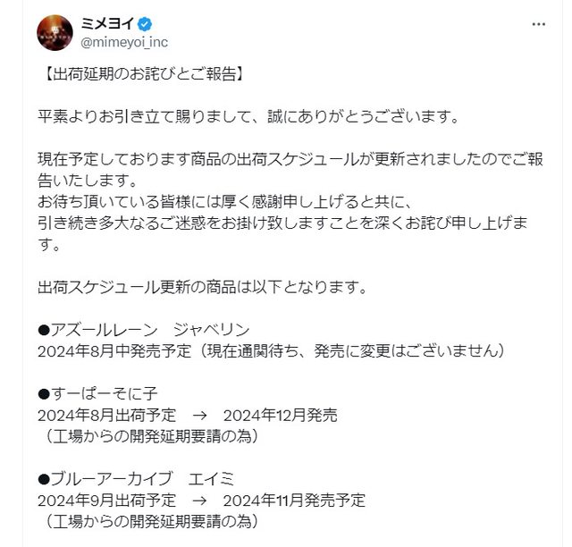 標題[蔚藍] MIMEYOI 英美 PVC延期至2025年5月