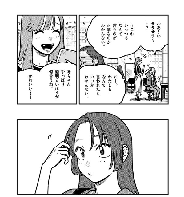 剪完頭髮後 冴子跟優梨愛聊天才知道美和當了優梨愛的髮型模特