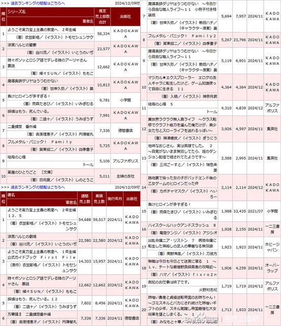 標題[情報] 本週輕小說O榜銷量