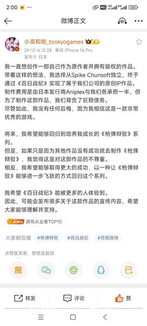 [情報] 小高和剛:我想回去製作槍彈辯駁