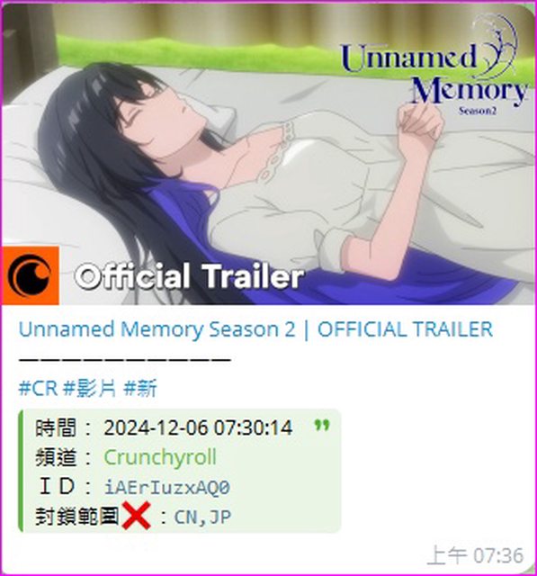 根據今天Crunchyroll於公告和YT預告等相關資訊,