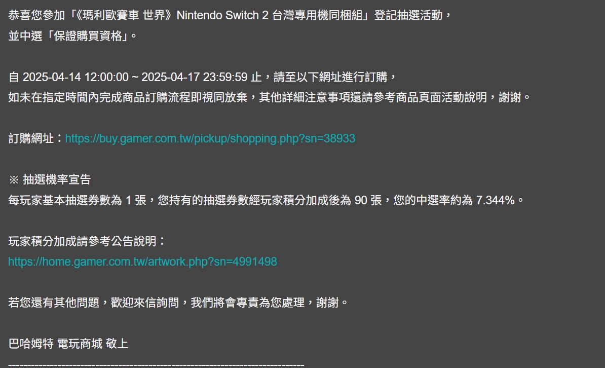 推 speedingriot: 保證購買資格中選通知信(商品編號:XXXXX) 04/14 09:57