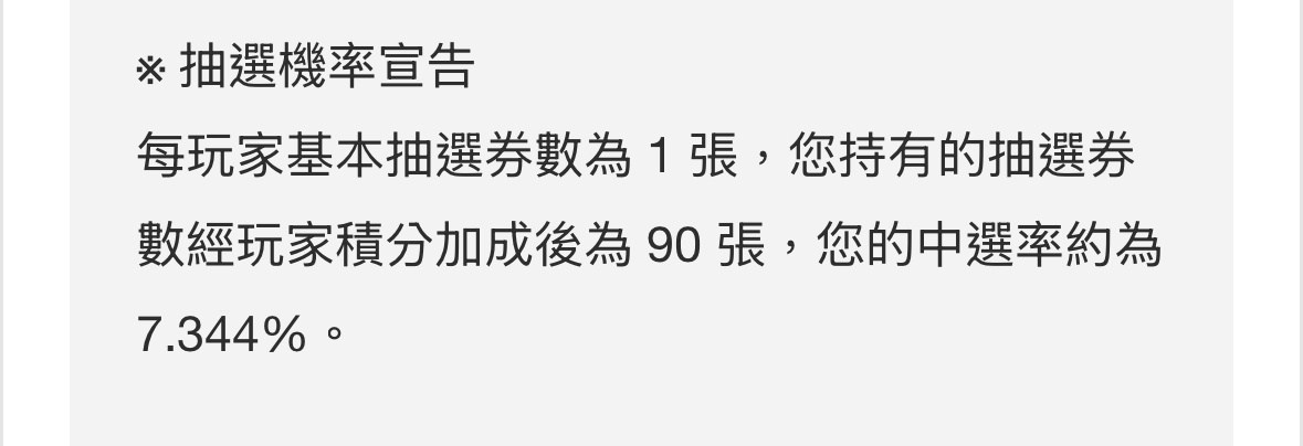 → laio: 群組看到的,1/4還沒抽到也真是倒霉 04/14 14:39