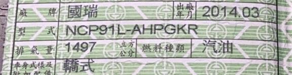 車輛品牌/產地/出廠年月: 2014年3月