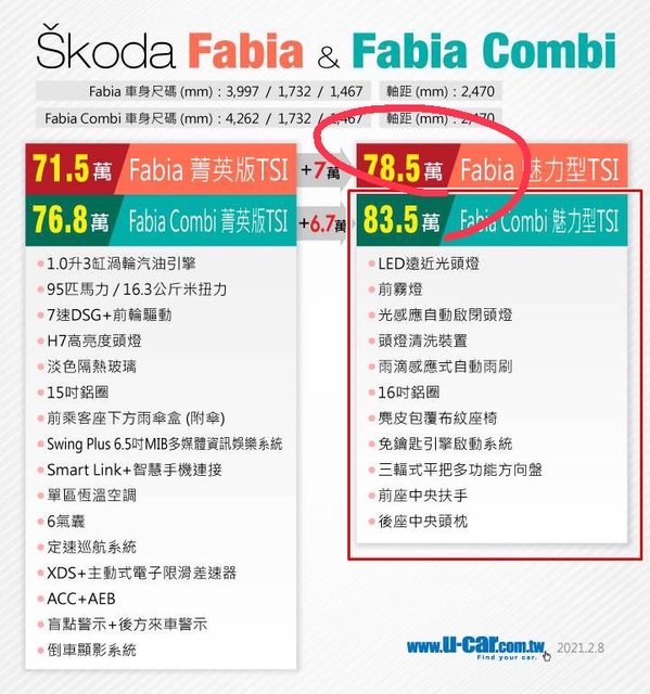 車款型式/排氣量:魅力型TSI 1.0 (頂規)