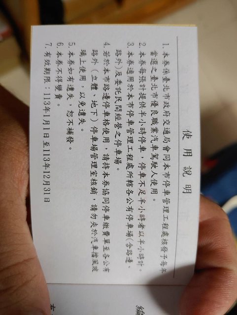 物品名稱:北市公有停車券