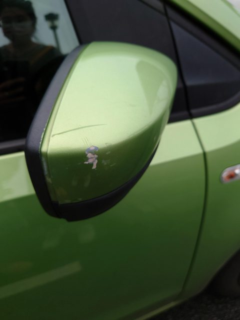 已於台中名店補過,迄今未惡化,細看仍有痕跡但不影響使用(駕駛視角看不到)