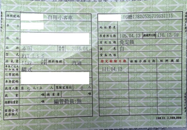 車款型式/排氣量:honda fit 1.5 S版/1497