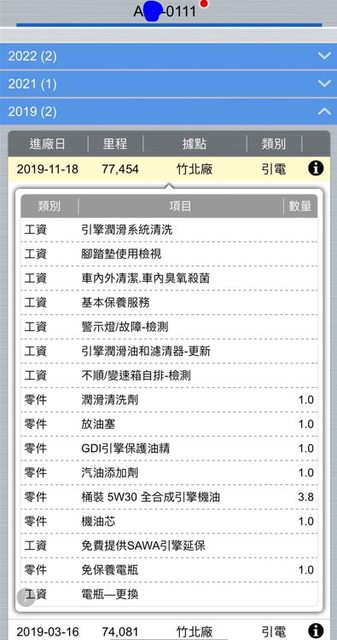 維修一次 (最後幾次回原廠記錄app皆可查到 2019/03/16,2019/11/18,2021/01/28,