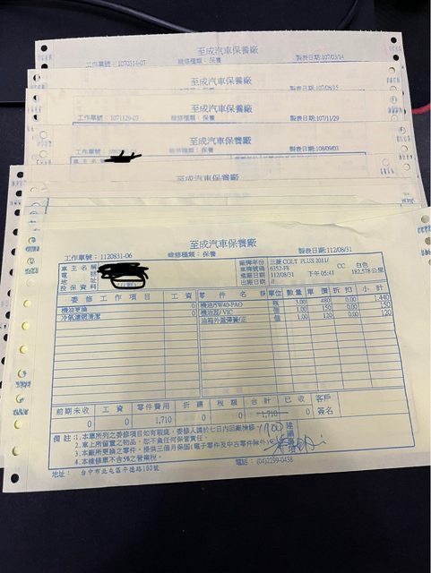 (2018年至2023年保養工單都有留著,保養廠老闆建議換什麼就換什麼)