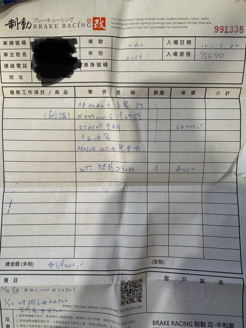 去年一月高雄制動改購入 裝在volvo v40上 今年五月賣車時卸下 大部分只跑市區