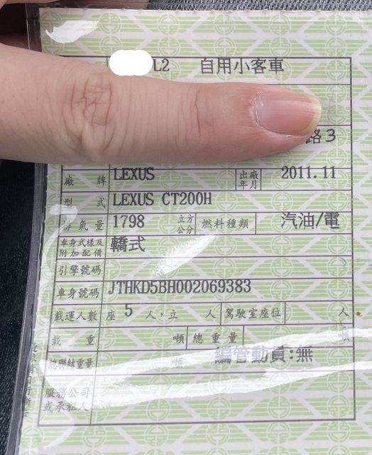 車款型式/排氣量:CT200H/1798