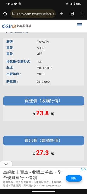參考估車網及各大二手車網站決定