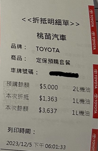#12/5保養廠增購機油保養券約還可使用3次