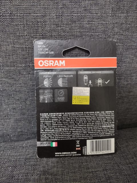 OSRAM 歐司朗 P21W 2W 白光LED燈泡 一對