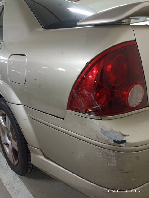 ⑵車身漆面多處老化掉漆,前左葉子板稍微位移,左後尾燈破損及左後葉子板擦痕均係停在停車格時被擦撞,非行進間碰撞