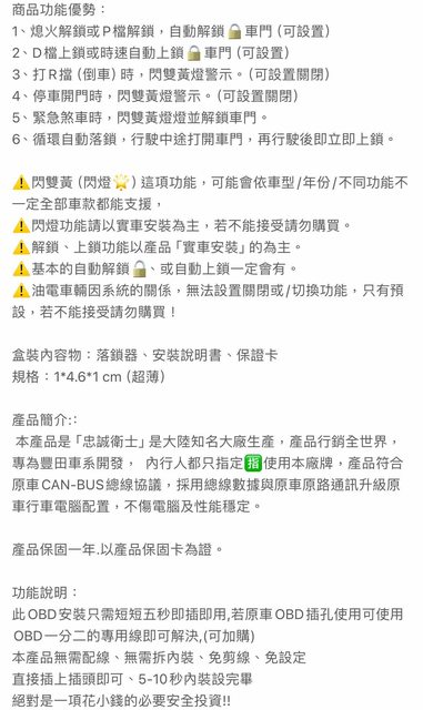 物品名稱:忠誠衛士OBD直插,開門閃雙黃燈