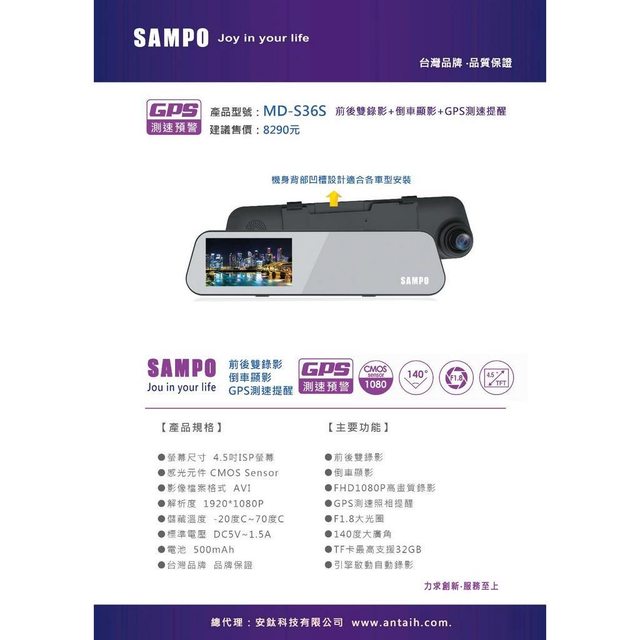 標題[週邊] 售SAMPO MD-S36S後視鏡行車記錄器