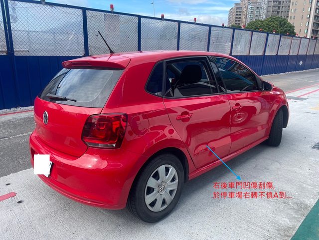 右後車門明顯刮傷/凹陷 (右轉A到柱子) - 反映在售價..