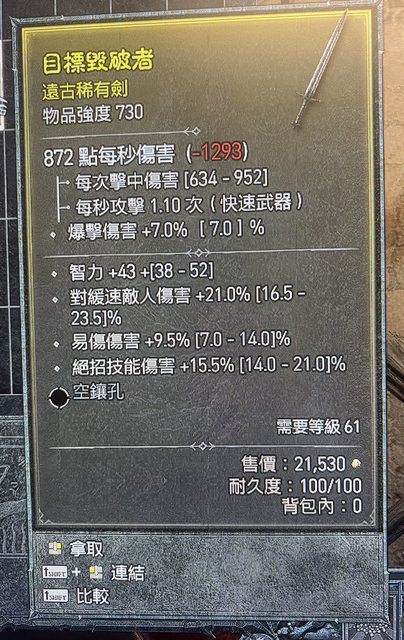 標題[競標] D4 賽季 61等遠古劍