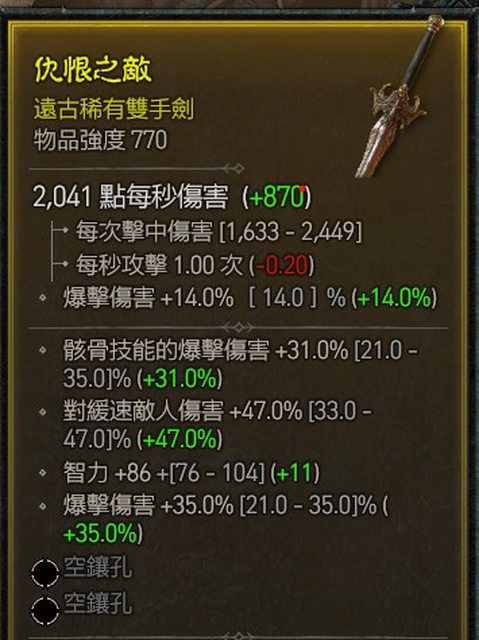 標題[競標] 滿爆傷+近頂骸骨爆傷+滿緩傷+智 雙手劍