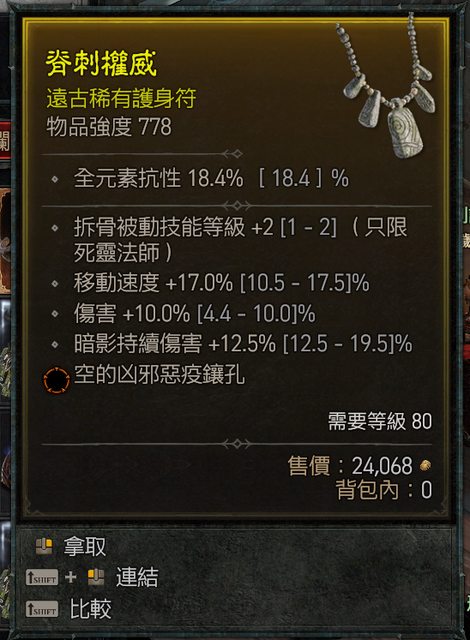 標題[競標] 賽季 死靈近畢業項鍊 拆骨/移速/傷害