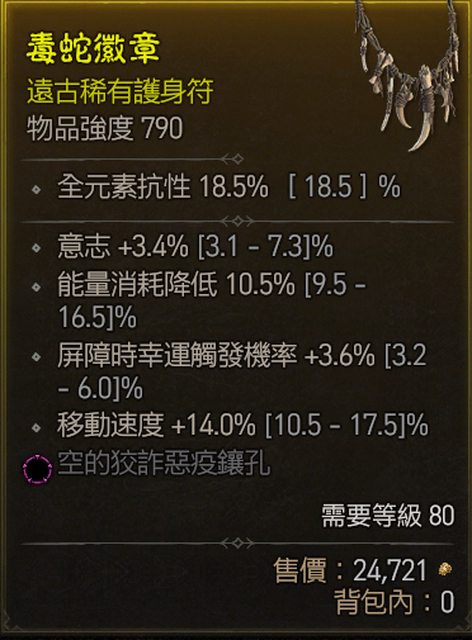 10. 790項鍊紫孔 移速 消耗 屏障幸運
