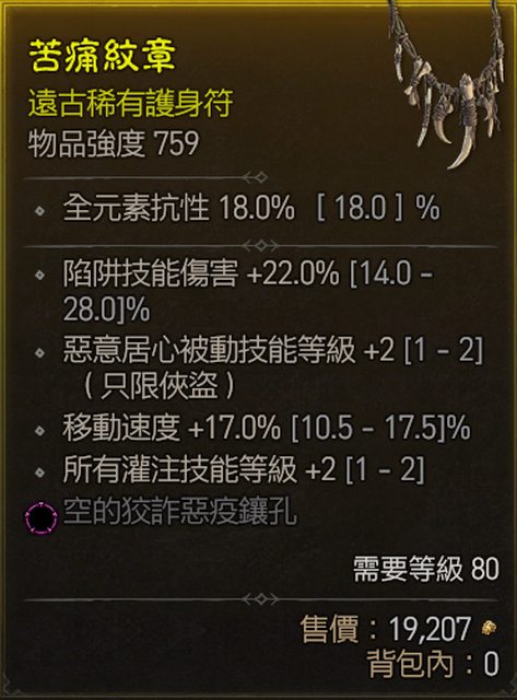 17. 759(售出)項鍊紫孔 惡意居心2 灌注2 移速近頂