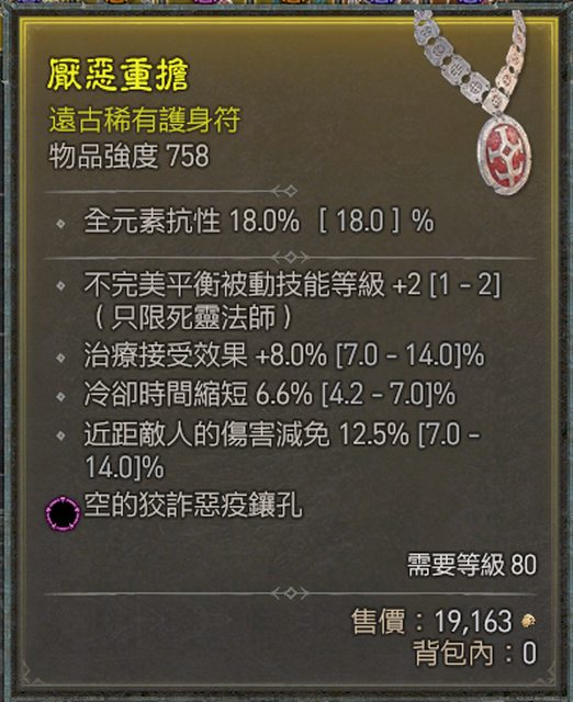標題[競標] D4 S1 死靈項鍊 不完美/冷卻/近距減