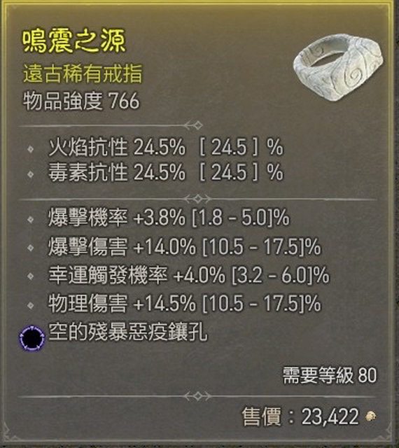 標題[競標] D4賽季 爆擊爆傷幸運 藍孔戒指