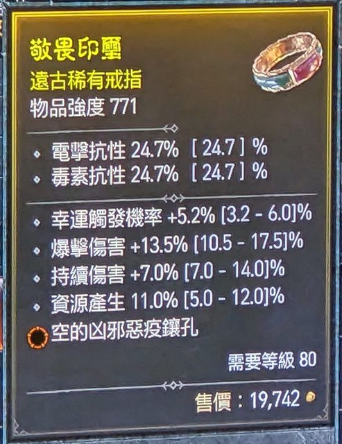 標題[競標] D4賽季 幸運爆傷資源 橘孔戒指