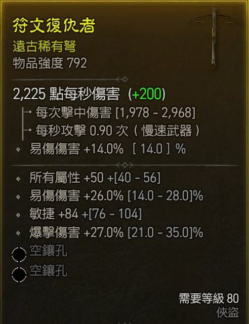物 品:D4 S1 俠盜弩(易傷 全屬 敏)