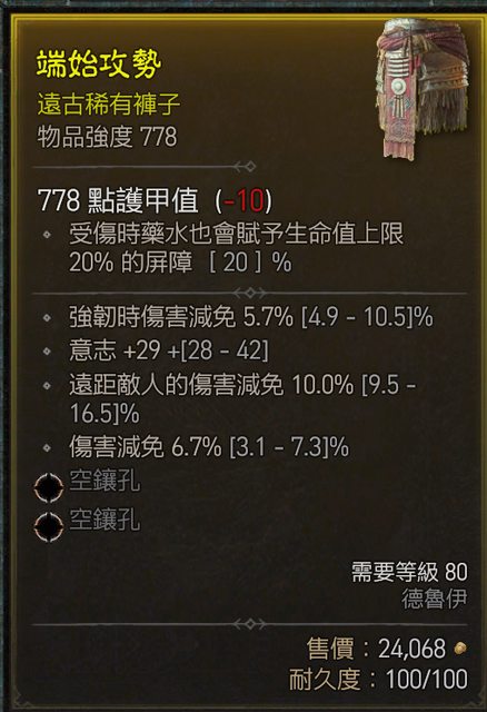 物 品:778減傷褲 強韌減/遠距減/總護甲/意志