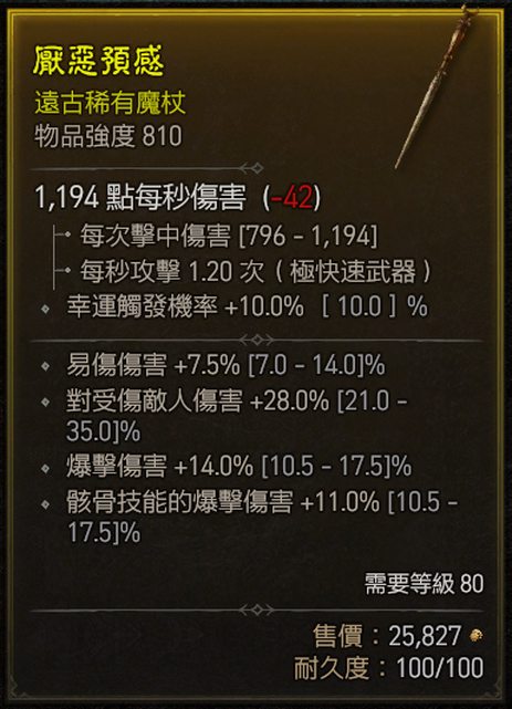 標題[競標] D4 810單手魔杖 易傷 爆傷 骸骨爆