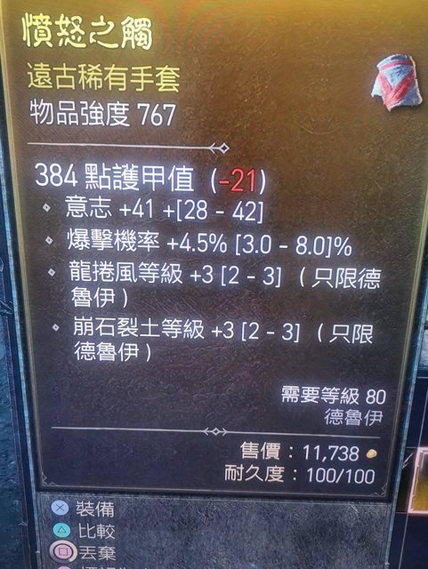 標題[競標] D4 S1 德魯伊 山風狼手套 爆率,近頂意志