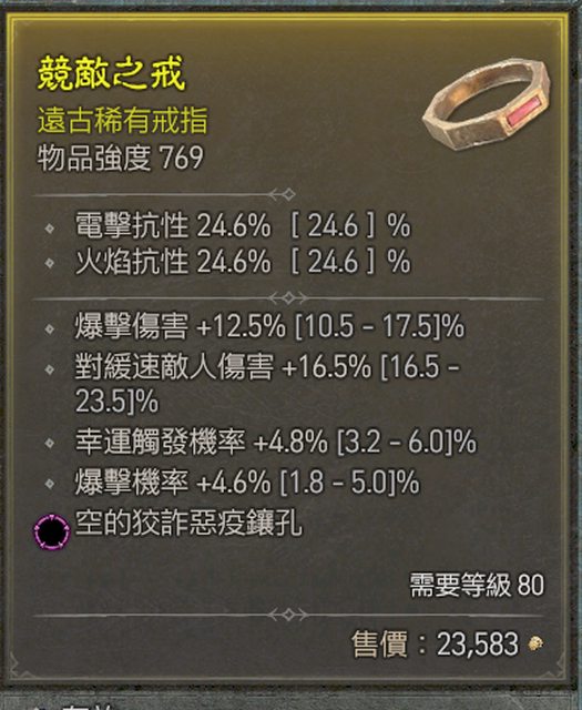 物 品:爆率4.6/爆傷12.5/幸運4.8 戒指 狡詐鑲孔