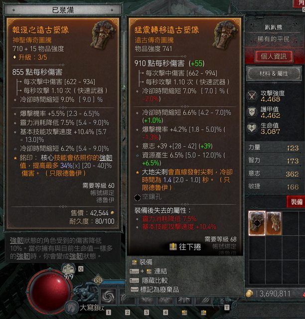 目前68等撕碎狼,正在靠浪潮跟低階惡夢湊風狼和電狼裝, 因有不錯的電狼手套了,想請問這個傳奇副手 1. 已洗過一次,再洗所費不貲,但仍可再賭1~2次 2. 有需要再洗高%嗎 或賭靈力消耗降低? 強韌減傷? 幸運一擊? 目標玩法優先序: 電狼>電吹風=山風 3. 我知道這裝很遜,板友應該會推下一件 不過如果想盡快切BUILD,這件短期內對我很重要(又弱又窮無法等太久lol) 求建議再洗賭哪個屬性比較泛用 感謝 -- ※ 發信站: 批踢踢實業坊(ptt.org.tw), 來自: 114.40.12.66 (臺灣) ※ 文章網址: https://ptt.org.tw/DIABLO/M.1691773176.A.73E