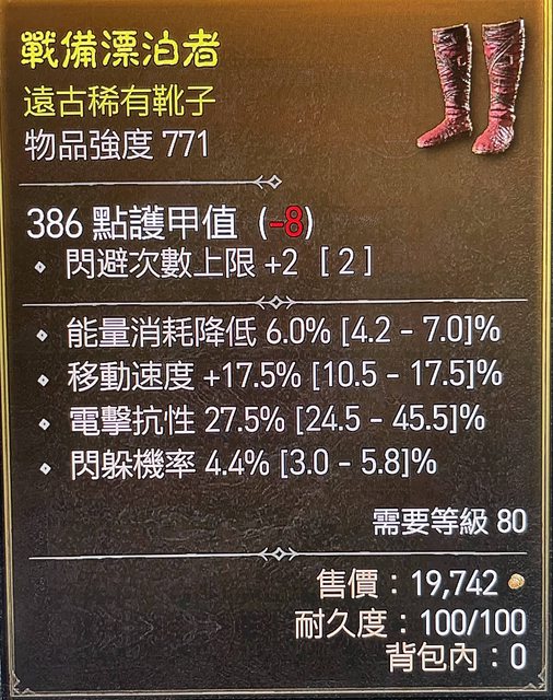 標題[競標] D4 S1 鞋子 閃避次數2 滿跑速 減耗6 閃躲