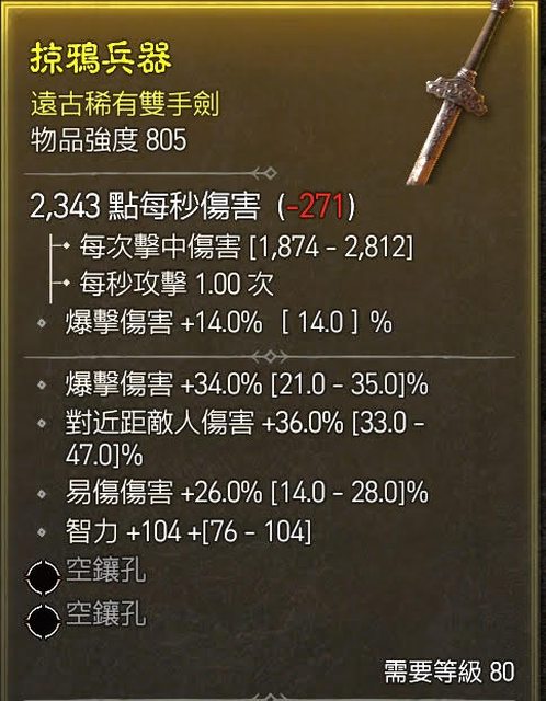 標題[競標] D4 S1 805雙手劍 易傷/爆傷/智力