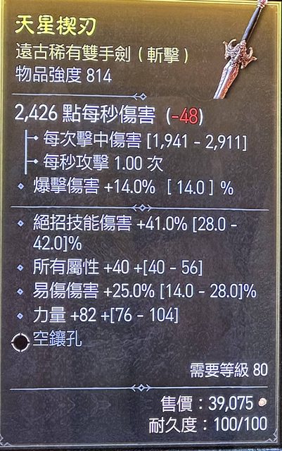 物 品:814雙手劍 高易傷+力量全屬