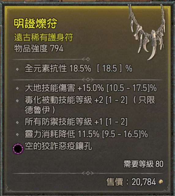 標題[競標] D4 S1 項鍊 毒化/大地傷/防禦