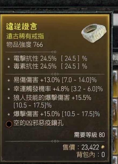 標題[競標] D4 易傷 幸運 爆傷 橘孔戒指