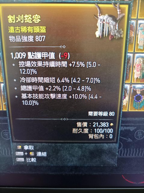 物 品:炸盾頭(頂基本攻速+10%,總護甲+2.2%,減高CD 6.4%)