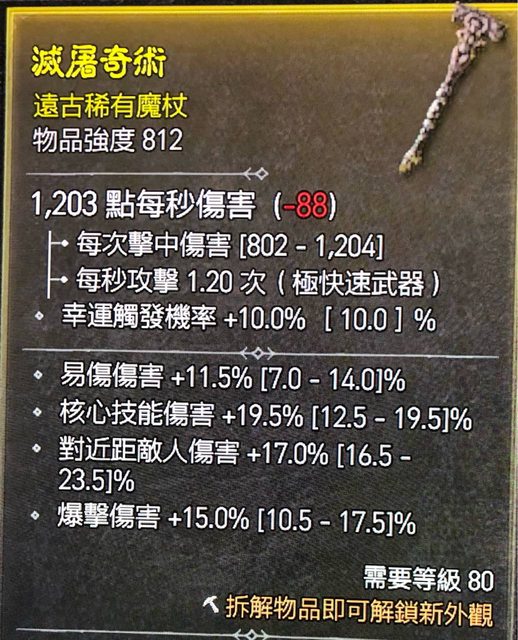 標題[競標] D4 S1 單手魔杖812 易傷爆擊核心