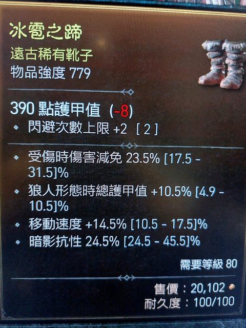 標題[競標] D4s1 鞋子 閃2 頂狼甲 移速 受傷減