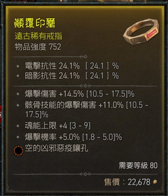 標題[競標] D4 S1 戒指 頂爆率 爆傷骸爆傷魂能橘洞